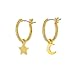 For those who love the stars too fondly to be fearful of the night! These adorable huggies with their dainty moon and star charms on classic hoop earrings are great for everyday wear–– Brighten up the day with their fun asymmetrical design!