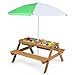 Removable & Adjustable Umbrella: This wooden picnic table is equipped with a waterproof umbrella. Simply using the easy-to-release mechanism, you can open the umbrella and adjust it to your desired height to offer your kids a shelter from sunshine. It can also be removed for indoor use.