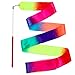 3 rainbow colored dancing ribbons with horizontal thick stripes, 3 rainbow colored dance ribbons with vertical thin stripes and 3 with gredient colors, vibrant and changeful colors to draw others' attention
