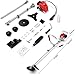 【Multiple Accessories】This gas weeder is equipped with a variety of accessories: 4 cutting heads, an extra start pull rope and a spark plug for replacement, a balance shoulder strap, a plastic mixing bottle for mixed fuel, a protective safety device and a Installed toolkit.