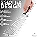 Effortless Flips: Features a beveled edge that slides beneath food and flips easily. Its slotted construction effectively drains out oil and grease when frying foods like fish, egg, bacon, fillets, and more!