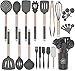 Professional Silicon Kitchen Utensil Set : AILUKI Kitchen Utensils Set includes Slotted Spatula ,Slotted Spoon,Flexible Spatula,Slotted Turner, Solid Turner, Pasta Server,Solid Spoon, Kitchen Tongs, Draining Spoon, Spoon Spatula, Oven Mitt, Whisk ,Deep Soup Ladle,Spatulas and Brush. 17 Pcs different Utensils to complete your dishes and make cooking much easier.