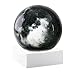 Glass globe has 4" diameter and fits nicely in the hand. Overall dimensions: 4.5" x 4" x 4" (h x w x d) and weighs 2.5 pounds.