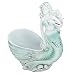 This mermaid figurine is made of durable polystone and poised on a vase like sea shell in a weathered finish of white and washed blue