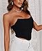 【FEATURES】 Asymmetric hem and fish bone support, midriff-baring stytle, shirred and ruched in the front , body wrap drawstring closure, sleeveless, backless design helps to show off your sexy bodyline.