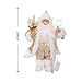 Traditional Design: This santa claus with big white beard is wearing his traditional golden Christmas suit with woolen boots and golden hat, a real jingle bell on the top of hat makes a pleasing jingle sound when moved, he carries his LED scepter over the hand and a gift bag on the shoulder.
