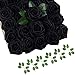 ❤ COMES WITH 6 PCS LEAVES: Each artificial black flowers head is aprrox. 3 inches, the stem is about 7 inches long. It also comes with 6pcs green rose leaves. 50 flower heads with 6 pcs leaves, it is the best set for your decoration and craft projects.
