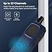 【22 channels & Privacy Secure】Stable signal 22 main channels of two way radios. One-to-one and one-to-more communication function allow more walkie talkie communicate on the same channel. You may also use the scanning feature to see which channels are currently in use, ensured your family using the same frequency minimize the like of other people being able to talk with your child, to protect your privacy.