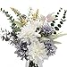 ♥ Home Office Decorations : The flower arrangements artificial centerpiece including 1 fake flower bouquet with white grey blue flowers, some fake plants and one glass vase decorated with twine. It's suitable for coffee table decor, modern farmhouse decor, kitchen table decor, dining table decor and boho decor.