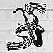 [MUSIC SAX WALL ART]: This metal decoration depicts saxophone and a string of fluttering notes, which makes people feel like hearing wonderful music. It is suitable for dressing up your music room or your personal space.