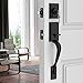 Durable & Portable iron black door handle front door handle which fits 1 3/8-Inch-1 3/4-Inch doors deadbolt lock matte black black exterior door handle entry door lever.