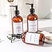 Superior Quality: Made of High-Quality Thick PET plastic, Heavy Duty and Durable, Won't break, natural and safe to fill with all kinds of daily use liquids. Reusable amber pump bottles, excellent for preserving the liquid hand wash soap, body soap, hand sanitizer, shampoo, massage oils, essential oil blends, hand creams and lotions soap etc. SIX elegant high-end labels included, hand soap , dish soap, shampoo, conditioner, sanitizer, and hand lotion, durable and waterproof for daily use.