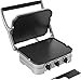 CUSTOM CONTROL: Sturdy panini-style handle with hinged floating cover adjusts to thickness of food, selector knob choose grill or griddle function and the adjustable temperature controls for grill or griddle