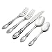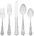 20-piece flatware set with service for 4. Set includes 4 each: Salad/dessert fork, place fork, place knife, place spoon, and teaspoon