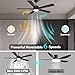 【Modern Style with 2 in 1 Blades 】Modern matte black ceiling fan is with 5 blades of dark walnut and gray plywood. Smart lighting & ceiling fans with auto-on/off timer help to set your daily routine.