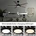 【Bright Dimmable LED Lights】 Ceiling fan with color-changing light (3000K warm yellow light, 4000K bright daylight, 6000K cool white light), dimmable from 0%-100%, create desired atmosphere for working, leisure, party. Bright 2000 lumen ceiling fan light with better eye protection, longer lifespan.