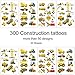 Package of 300 Construction themed temporary tattoos with 30 designs.