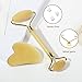 【Natural Materials】Guasha set for face contains 1 double-headed jade roller and 1 gua sha stone. The scraping massager and rollers are made of natural jade with a smooth surface, easy to clean and store.