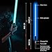 ✔【Sound Effects and Light Effects】12 sound font effects; 3 light effects (Steady, Pulse,Unstable) ; 3 volume settings (High, Low, Mute).The light saber sword has a real blaster sound, super sensitive, louder and brighter. The RGB light dueling saber combines special combat sound effects and flash modes to bring a vivid and realistic combat experience.