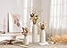 Living Room Decor and Accessories- (measuring 3”L x 3”W x 10”H; 3”L x 3”W x 7.5”H; 3”L x 3”W x 5”H) These white vases are the perfect home decor accent, and are ideal, for any room, style, or occasion. Whether your style is boho, modern farmhouse, rustic, or cottagecore, this vase set will keep your home looking up to date year after year. Add in your favorite faux flowers for an extra pop of color.