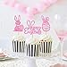 🎀PACKAGE INCLUDED: 24pcs pink glitter happy easter bunny rabbit cupcake toppers.