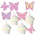 🎀PACKAGE INCLUDED: 24pcs pink glitter butterfly cupcake toppers, 4 styles, 6pcs of each style.