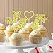 ⭐SAFE MATERIAL: Gold glitter cake picks made of natural bamboo and eco-friendly cardboard paper, card stock made cupcake topper very sturdy, sparkling everywhere make a great touch to the cupcakes.