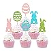 🎀PACKAGE INCLUDE: 24pcs Happy Easter Day theme cupcake toppers, 6 styles, 4pcs of each style.