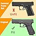 Compatible & Incompatible: Compatible with most subcompact and micro-compact size; Incompatible with large size or mini pistols with laser. The bottom of the holster is open to support the longer barrel sticking out.