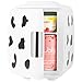 COMPACT SIZE: The 4-liter capacity fridge chills six 12-oz. soda cans; The interior is 5 x 5 x 7.5 and includes a removable shelf so you can store small items such as yogurt, fruit, milk, juice, smoothies, bottles, cheese, coffee, and skin-care items