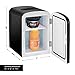 COMPACT SIZE: The 4-liter capacity fridge chills six 12-oz. soda cans. The interior is 5 x 5 x 7.5 and includes a removable shelf so you can store small items such as yogurt, fruit, milk, juice, smoothies, bottles, cheese, coffee, and skin-care items.