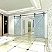 【Easy and Effortless to Install 】Pre-drilled holes on the rail and all the small accessories included, no need to break the wall and install a door frame to open and shut doors, this unique sliding door hardware kit makes your room looks more spacious and stylish with simply push and pull, space and energy saving while silent pulleys ensure less noisy.
