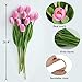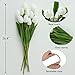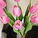 SIZE FLOWER: Package includes 10 faux tulips flower, The length of each tulips is 18.5 inches, the height of the tulips head is 2.5 inches, the width is 2 inches, and the length of the tulips stem is 16 inches.