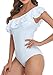 Off the shoulder one piece swimsuit features double ruffle trim; Asymmetric one shoulder neckline