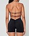 Open Back Halter Crop Top: Designed for low impact exercises such as pilates, yoga and barre, our backless sports bra combines aesthetic with functionality. This backless sports bra with an open back design enhanced with multiple cross back straps and a bust flattering scoop neckline.