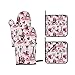 Pink Flamingo Pineapple Printed Oven Mitts And Pot Holders Sets: 2 Oven Mitts And 2 Pot Holders (1 With Pocket And 1 Without Pocket)