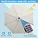 Hassle-free setup and storage with a detachable pole and crank handle; NOTICE: Please check the plug connection by unscrewing the solar panel before use, and the solar panel should be exposed to sun for 6-9 hours.Umbrella base not included.