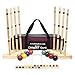 DELUXE CROQUET SET: The classic backyard Croquet set. Includes everything needed to play 6-player Croquet: 6 wooden mallets, 6 colored balls, 9 wickets, and 2 stakes