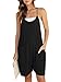 ❤Eyecatching Feature - Deep V neck, adjustable spaghetti strap romper, women sleeveless romper, solid plain color, two side pockets. Create a flattering loose comfy effect.