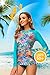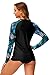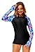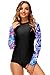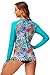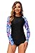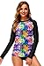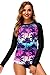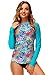 ☀️Rash Guard Features - Sun Protection, Blocking Harmful Ultraviolet UVA and UVB rays Swim top with Raglan Color Block Sleeve, Floral Tropical Print.