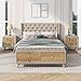 【Upholstered Platform Bed】The classic style of this upholstered queen size platform bed frame will add warmth to your bedrooms or guest rooms while maintaining an understated, elegant appearance that will go with any color scheme. You now have a new favorite place to unwind thanks to the headboard's button-tufted fabric finish with a linen-inspired look’s you a new go-to spot to sit back and relax.
