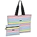 Large Roomy: Approx 21"x 15"x 5.5 "with vegan leather handle. Makeup Bag: Approx 8.7"x 5"x 3 ". It’s comfy to carry it over shoulder because of the perfect size.