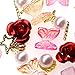 3d flowers for nails: Package includes 6 pcs metal rose nail stud, about 25 pcs Aurora Iridescent Effect butterflies, gold nail charms, artificial pearl and flat back rhinestones.