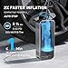 Father's Day Gift —— [2X Faster 12V Cordless Tire Inflator]: The powerful X8 APEX tire inflator has a built-in high-performance chip that can quickly inflate tires and provide 32L/Min of airflow. Top off 26.3" EV & Passenger Tires in Under 1 Minute (36PSI-42PSI). Take only 90s to pump up one Tesla tire (235/40 R19) from 29PSI to 36PSI; less than 6 minutes for one 205/55 R16 car tire(0-36PSI).