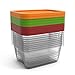 42-PIECE CONTAINER SET: Includes (12) 1-cup small snack containers, (4) 7-cup medium lunch containers, (3) 9.5-cup large containers, and (2) 11.5-cup extra-large containers with matching lids; Dimensions, small snack (L x W x H): 3.7 x 2.8 x 3 inches; Dimensions, medium (L x W x H): 8.5 x 7 x 2 inches; Dimensions, large (L x W x H): 8.5 x 7 x 3 inches; Dimensions, extra-large (L x W x H): 8.5 x 7 x 3.5 inches