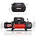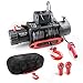 Electric Winch with Superior Toughness—— Made of heavy-duty steel with powder coating, this trailer winch is rust and corrosion resistant, and the synthetic rope boasts a breaking strength of 23,809lbs with an automatic brake designed to keep a solid grip of it