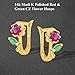 PREMIUM QUALITY: 14k Yellow Gold Red Green Cubic Zirconia Flower Hoop Earrings for Women Elegantly Crafted in Highest Quality for Luxurious Shine and Feel