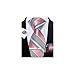 🎁【PURCHASE CONTAINS】Silk Pink Grey Striped Necktie + Woven Pocket Square + Cufflinks + Silver Tie Clip+ Gift box.It's Proper gift for Father's Day,Christmas Day,Valentine's Day,Thanksgiving Day,Anniversary,birthday ect