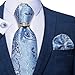 🎁【PURCHASE CONTAINS】Silk Silver Blue Paisley Tie+ Woven Pocket Square+Cufflinks+Silver Tie Clip+Gift Box.It's Proper gift for Father's Day,Anniversary,birthday,Christmas Day,Valentine's Day,Thanksgiving Day ect