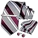 🎁【PURCHASE CONTAINS】Silk Black Red Striped Necktie + Woven Pocket Square + Cufflinks + Silver Tie Clip+ Gift box.It's Proper gift for Father's Day,Christmas Day,Valentine's Day,Thanksgiving Day,Anniversary,birthday ect